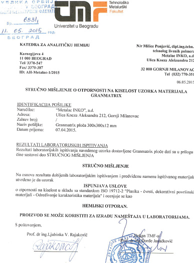 As a subsidiary company within the Metalac group, Metalac inko Ltd got the certificate for the integrated QMS/EMS in 2006 and the last recertification was made in 2012.